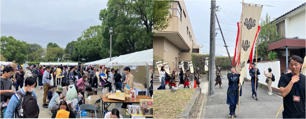 2025.11.1 中村区民祭りレポート 令和7年10月25日(土) 10:00~16:00 令和7年10月25日(土)に中村区民祭りが行われました。来年の大河ドラマは「豊臣兄弟!」の影響もあり、中村公園一帯は多くの人の来場がありました。 今回中村区介護保険事業者連絡会としてのブースでは、高齢者疑似体験、電動車いす体験を行うことができました。 本日はご多忙中にもかかわらず、ご来場いただき誠にありがとうございました。